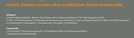 INFORMATIONEN ZU ALLERGENEN UND ZUSATZSTOFFEN